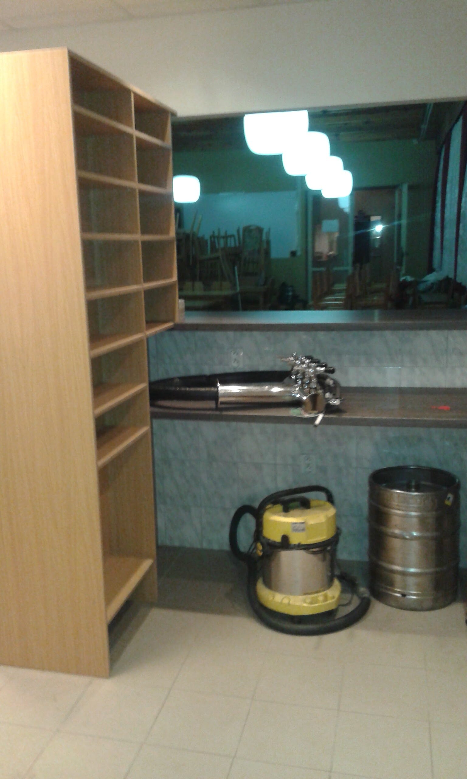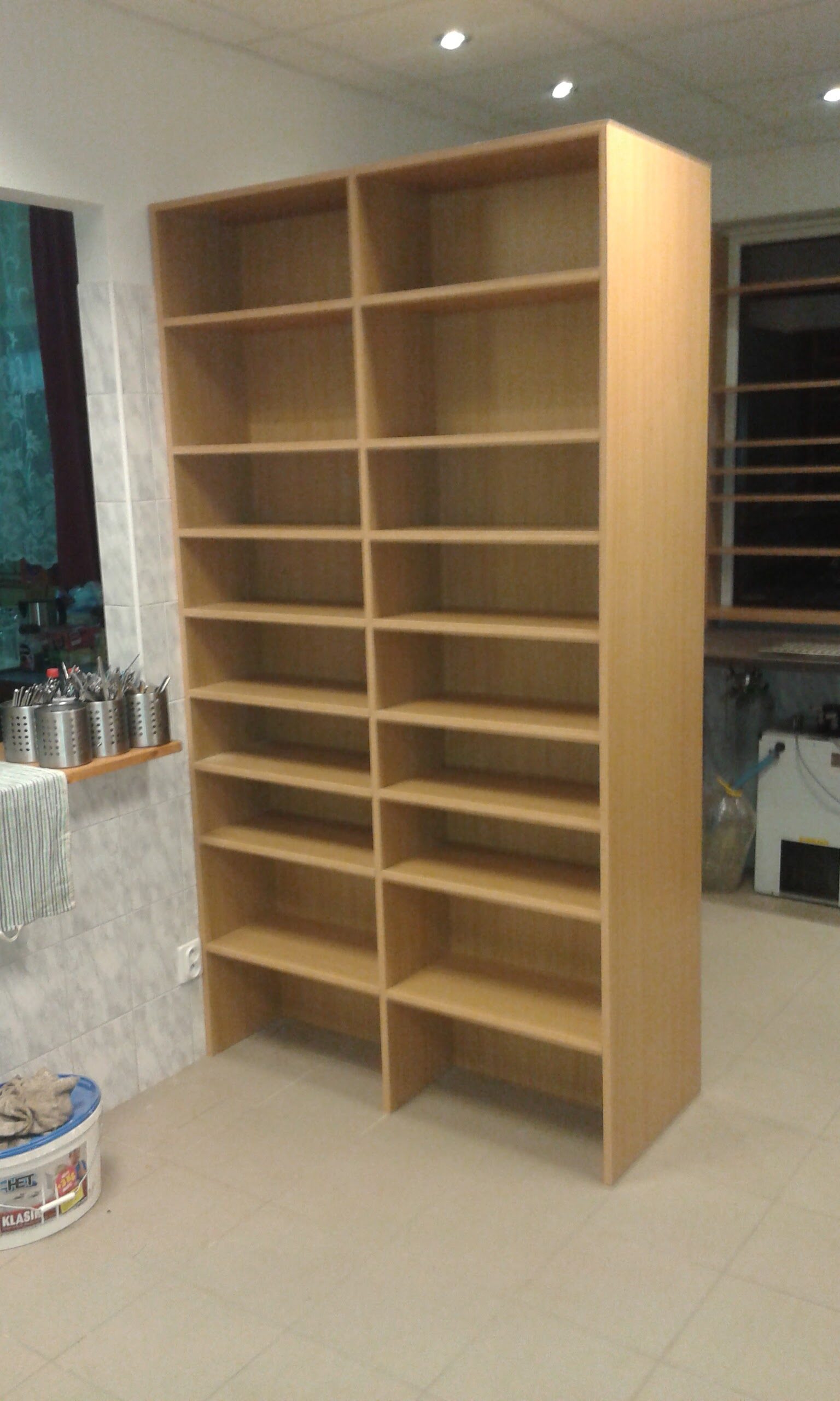 Pro zákazníka jsme vyráběli nábytek, linku a regály pro výdejní okenko. Nábytek se skládal z veklého oboustraného regálu na nádobí, malého regálu na zboží a linky na které budou umístěny spotřebiče.